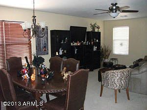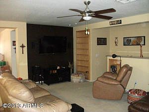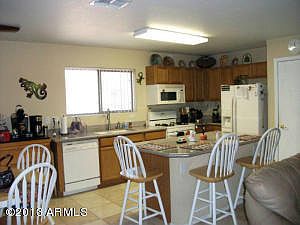 Wonderful, upgraded, single owner home! Kitchen with large island, gas range, and upgraded granite countertops, opens to the spacious family room with built-in shelves. Formal living/dining rms. Raised vanities in both bathrooms, master bath with full sized natural limestone shower. Travertine tile, 2 tone paint & upgraded ceiling fans. Garage w/cabinets(granite top), service door and epoxy floor. N/S lot in single level neighborhood, has covered patio, pavers and lg custom built shed with elec, lights, metal roof w/gutter. Gilbert schools/low Mesa taxes. Prime location. Close to the proposed Apple plant, US 60 & 202, Gateway airport & shopping. Buyer to verify all info & measurements. TV bracket, speakers, 2 white bath cabinets do not convey.