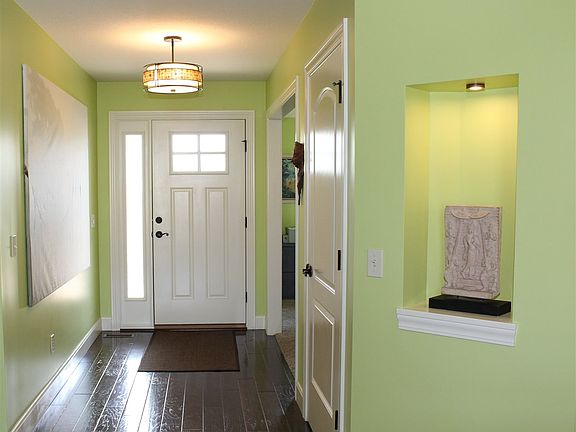 Beautiful custom built home by Granite Ridge located on a nicely landscaped cul-de-sac lot with a pond view! Nice big foyer with a den/office that has a cathedral ceiling. Kitchen in this homes offers premium Grabill painted cabinetry with dove-tailed joints, soft close doors and drawers, pull-outs, spice rack, tray dividers, crown molding, granite counter tops, glass tiled back splash, blanco sink, touch-less faucet, stainless Kitchen Aid double gas range, micro-hood and dishwasher. Huge 11x12 walk-in pantry for tons of storage. Anderson 400 series windows with 8' Transom sliding doors. The FP has a gas line and can burn wood or you may install a gas log. The deluxe MB features ceramic flooring, walk-in tiled shower with dual shower heads and shampoo insets. Separate stool area and has raised vanity with granite counter tops. Master also has a 2 story closet. Enjoy mornings and evenings either in the enclosed porch or step outside on the extra large patio for beautiful views of the pond. The over-sized garage has an extra deep 30' foot third bay with pegboard and workbench. Heated garage with insulated garage doors. There are so many extras you will find in this home like 10' ceilings in GR, FR, kitchen and DR. Cathedral ceiling in 3-season rm. Engineered hardwood flooring in foyer, hall, DR, kitchen and FR, 36" doors throughout, ceramic flooring in all baths, utility rm and pantry. Don't miss out on seeing this custom home!