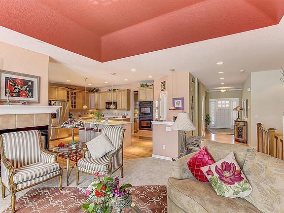 This Eagle View Ranch with walk out basement has too much to list. Beautiful Mountain and Golf Course views from the great room, master bedroom and veranda. Large master bedroom with fireplace, 5 piece bath including a Pure Air Bath by Jacuzzi and massive walk in closet. Office/Den has a walk in closet and full bath. Second main level bedroom also has a full bath. Dinning room has a butlers pantry. Kitchen is open to great room, under cabinet lighting, pull out shelving, pantry and double ovens. Main floor laundry. Walk out basement has 2 bedrooms (one currently used as art studio) full bath, family room, indoor workshop, seasonal closet, locked under stairs storage and lots of additional storage space. Plantation Shutters. Tray ceiling in great room and master.