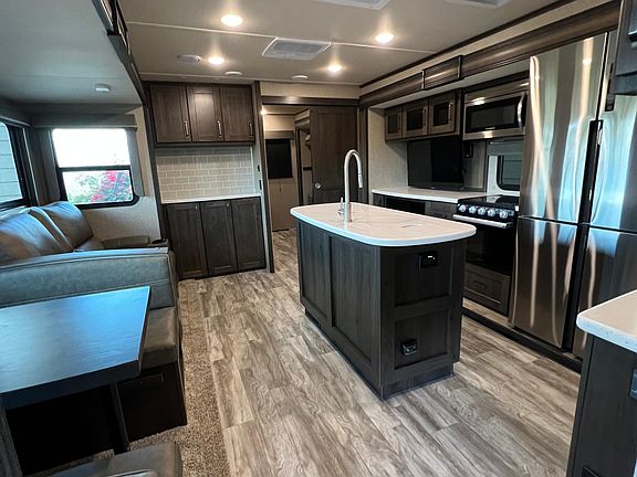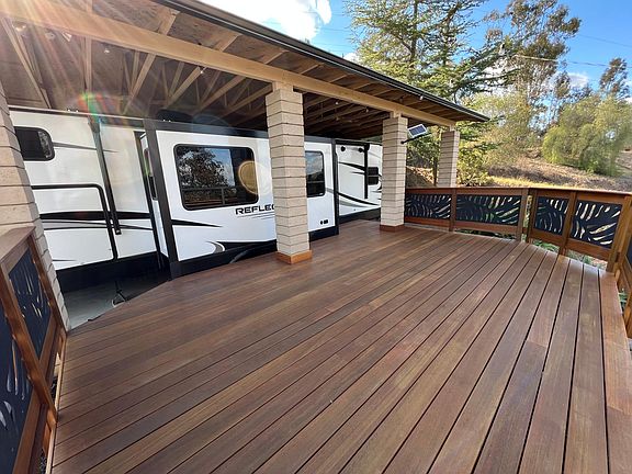 Maximum occupancy is 2. Quiet, private rental with amazing views! This is a brand-new, never rented RV "apartment" with great amenities. Fully furnished. Full sized frig, full-sized stackable washer/dryer, air conditioning, heated reclining captains chairs, 42" TV, queen in the master bedroom, rear bedroom with 2 bunks and a fold-out couch, dinette, gas stove, microwave, energy-saving LED lighting, private deck, 2+ parking spaces within a gated private property (maximum 2 permanent vehicles). Very safe and friendly neighborhood. This rental is on a private drive with only a few properties/neighbors. Enjoy yourself with the quiet seclusion of living in the hills with views for miles, daily hawk sightings, night-time owl hoots/sightings, and stars, stars, stars. Owner pays for water and trash. Renter responsible for gas (propane), cable, and electricity. Includes 2 gated parking spaces. No smoking inside unit (outside on deck ok). No pets