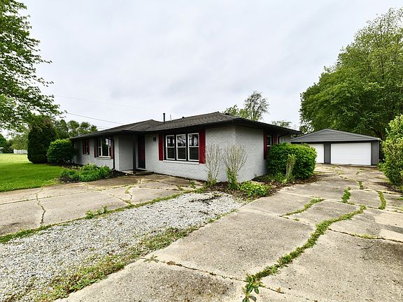 Welcome to this beautifully maintained brick ranch, offering 2,015 square feet of living space on a spacious 0.49-acre fully fenced lot. This home combines classic charm with modern updates, making it move-in ready and perfect for a variety of lifestyles. It is conveniently located just outside of city limits, which allows for a peaceful setting while remaining close to all of Elwood's amenities. Enjoy the convenience of a detached 2-car garage, ideal for storage or workshop space. Inside, you'll find fresh paint and new flooring throughout, creating a bright and inviting atmosphere. Major system upgrades include a new HVAC system (2023), PEX plumbing (2024), and new drainage to the sewer line (2024), offering peace of mind for years to come. The home has it's own private well, but is connected to the city sewer utilities. The bathrooms have also been thoughtfully renovated, with a main bath refresh in 2023 and a stunning total remodel of the master bath in 2024. With its generous lot size, ample updates, and solid brick construction, this home is a rare find. Don't miss your opportunity to own a turn-key property with room to spread out-schedule your private showing today!