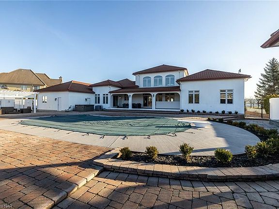 Embrace the essence of spring and summer at your own luxurious haven along the Niagara River Parkway! Nestled in the esteemed Niagara Falls area, close to the QEW, casinos, top-tier golf courses, wineries, and the USA crossing, this grand residence is set on a lavish 1.5-acre estate approx 20yrs old. Imagine entertaining in the expansive outdoor kitchen, complete with a granite-topped eating bar, or dining al fresco while overlooking the heated inground pool with its brand-new liner. Indulge in the hot tub, refine your swing on the private golf green, find serenity by the waterfall and pond, or share stories around the fire pit, all evoking a slice of Mediterranean paradise. Boasting nearly 4000 sqft of refined living space above ground and an additional 2400 sqft below, including a secondary kitchen and a walk-up basement, this home is an ideal sanctuary for a large family. With 7 bedrooms and 7 bathrooms, it accommodates everyone comfortably. The grand entrance sets the tone of elegance that pervades the home, with a family room featuring 25 ft ceilings and a gas fireplace to witness breathtaking backyard sunsets. A circular staircase ascends to a spacious loft with another fireplace and a private balcony for unobstructed river vistas. Adjacent to the vast, updated kitchen—complete with a large island, premium appliances, and a walk-in pantry—is a formal dining room, garage access, and laundry facilities. The principal suite offers direct backyard access, dual walk-in closets, and an ensuite bathroom. Car enthusiasts will appreciate the 4-car attached garage, 3-car detached garage,i deal for storage additional poolside storage. Freshly painted and with updated air conditioning, this home is ready to welcome its new owners. Could that be you? Schedule your visit and experience the allure of this magnificent retreat, where every season is celebrated in style.