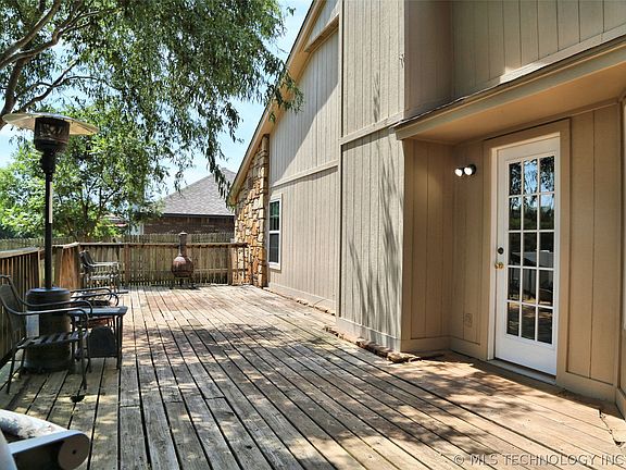 This home has so many improvements made already and is move in ready! New vinyl windows 2019, New exterior paint 2019, New siding 2019, New garage door 2019, New carpet 2018, New New Roof 2016, New heat & Air 2016 Large open family room with vaulted ceilings and fireplace, Master has private bath with his and hers closets, built in loft beds in second bedroom. Back yard has a large deck for entertaining and mature trees, fully fenced back yard with shed. Bixby School district