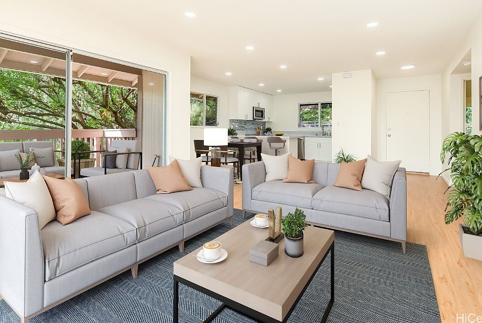Welcome home to Lakeview, a charming townhome nestled against the hillside of the Bluffs in Kailua offering a perfect blend of tranquility and convenience. The main level features an outdoor entrance foyer with storage space, a brand new renovated kitchen with quartz countertops, wood shaker cabinets, Frigidaire stainless steel appliances, laminate flooring, corner wrap around lanai, Whirlpool washer & dryer, storage room with water heater, 2 bedrooms and 1 full bathroom with walk in shower. The upstairs consists of the primary bedroom with private full bathroom and soaking tub shower combo. This rarely available corner unit with serene views also comes with 2 dedicated parking stalls and guest parking nearby. Seller already paid off $70,000 assessment for gate and lanai. Located minutes from Kailua's beautiful beaches, restaurants, shops, grocery stores, hiking trails, and easy access Kalanianaole and the Pali. Take advantage of this opportunity to own a piece of paradise in Kailua's coveted Lakeview development. Schedule a showing today and experience it for yourself!