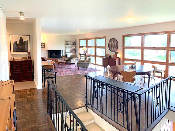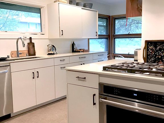 An elegant, mid-century modern, home located in a premier neighborhood. This 3-bed, 3-bath (approx. 2,450 sqft) features a spacious main level area with beautiful parquet hardwoods and windows pointing East towards the Minneapolis & Sweeney Lake. A true cook's kitchen with high end appliances, gas range, extra wet bar sink, sprawling counters, and space for a breakfast nook. You'll love that each floor's living space features its own fireplace and set of floor-to-ceiling windows that allows light to flood in. Three nicely sized bedrooms with master connected directly to it's own bath. Lower level was just remodeled with new bathroom fixtures and fresh carpeting. A deep, connected two-car garage and an unfinished portion of the basement offers plenty of storage and includes front-load washer/dryer. Central heating & air. Back of the house opens up to a larger backyard (lot is 0.32 acres) and little private patio. Lake access can be found just across the street, the hiking trails of Theodore Wirth Park are just over a mile away, and you're only a ten-minute drive from downtown Minneapolis. This home is ready for a family that's looking for a rental option that has both wonderful space and is in a great location! Tenant is responsible for utilities.