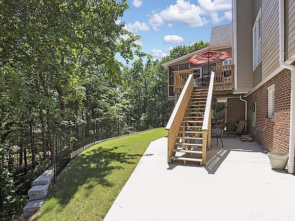 One of the most sought after neighborhoods in OAK MOUNTAIN SCHOOL district! Beautiful REAL hardwood floors in the dining room, living room/OFFICE, kitchen & family room! Kitchen has beautiful white cabinets, GRANITE countertops, stone tile backsplash, ISLAND, stainless appliances & breakfast area. Entertain family & friends on the deck & screened porch that overlooks the private yard. On cozy nights, enjoy the fireplace in the spacious family room. MAIN LEVEL MASTER SUITE has been completely UPDATED with ceramic tile shower w/glass door, double vanities & beautiful floors! There are 3 large bedrooms (one with an additional space that could be a study or workout area), & 2 full baths upstairs. FINISHED DAYLIGHT BASEMENT has 5th bedroom with trey ceiling, full bath & den with tons of natural light! This space is perfect for guests or a man cave! Just off the den is a covered patio to take your entertaining outdoors! A lower level yard is wooded & has so much potential! Welcome home!