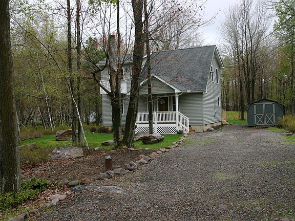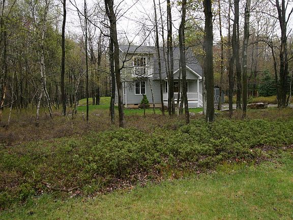 PERFECT INVESTMENT, VACATION OR PRIMARY HOME FHA/VA/USDA Compatible. Nice vacation or starter home in great community. Just under 1/2 acre. Semi private setting with vacant lot adjoining. 4 Bedroom, 2 bath, Stone faced propane fireplace, vaulted ceiling in living room, ceiling fans. Newly remodeled kitchen. Community amenities include a lake that allows fishing, beach, clubhouse, pavilion, basketball, tennis, volleyball. Close to Interstate 80. 2 hour commute to Philadelphia and NYC for convenient weekend trips. Local attractions include skiing, water parks, casino. Currently Tenant occupied and being sold “AS IS”.