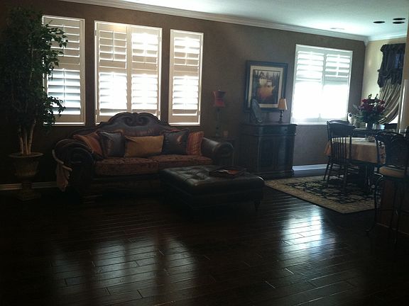 This is not a typical townhome. I have spent over 30K in upgrades from: Real hand scrapped hardwood floors, Picasso Shutters, Custom Closets, Travertine, Handcrafted Entrance Medallion, Crown Molding throughout the home, Granite fireplace, Granite countertops in all areas, kitchen, both bathrooms, High end faucets, paint, stain and accent walls, Custom backyard design, Epoxy garage floor, New doors and hardware - New light fixtures and fans, Flat panel light switches and more. MUST SEE!