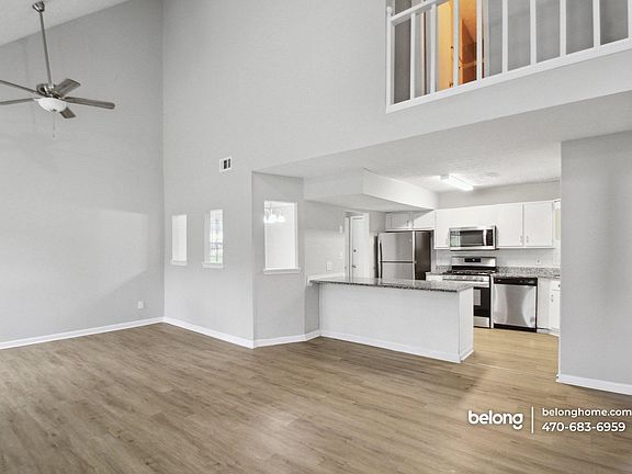 Every detail of this 3-bedroom, 2-bathroom home has been thoughtfully designed to offer both comfort and aesthetic harmony. From the moment you step into the living area, you're greeted by a vaulted ceiling and a series of well-placed windows that allow natural light to gracefully pour in. A traditional wood-burning fireplace serves as a charming focal point, adding warmth and a sense of occasion to the space. The kitchen is open to the main living area, making it ideal for both conversation and culinary efficiency. It features stainless steel appliances, crisp white cabinetry, and a clean white backsplash - all creating a setting that is both functional and visually appealing. A peninsula provides extra prep space without compromising flow. Your primary bedroom is conveniently situated on the ground floor and includes a walk-in closet and private ensuite bath. Two secondary bedrooms are located upstairs, sharing a well-appointed full bathroom. You'll find a neatly maintained lawn surrounding the home, along with an attached two-car garage for added convenience and security. Living here means you'll be near grocers like Kroger on S. Hairston Road and Rockbridge Road as well as Stone Mountain Park, which offers hiking trails, a scenic railroad, and seasonal events. *Fireplace is for decorative use only and cannot be used without consent from Belong. *Our homes come as-is with all essentials in working order. Want upgrades? Request it through the Belong app, and our trusted pros will take care of the rest!