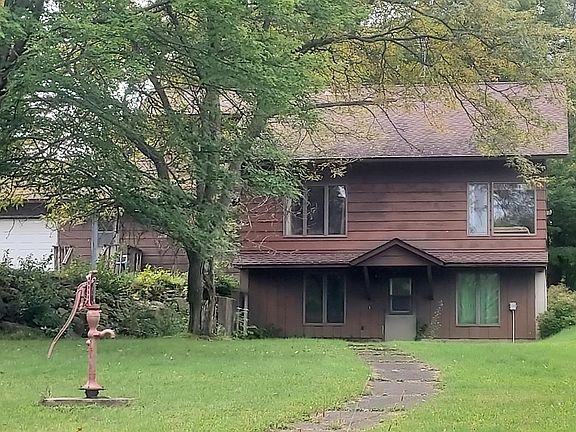 First time on the market! This custom home's soaring, vaulted living and dining room features pine beams and a rugged stair rail to the upstairs balcony, as well as large picture windows looking into the forest where wildlife comes out to play. Whitetail deer, wild turkeys, pheasants, and more wander around the massive yard and substantial wooded acreage to the north and west, ideal for hunting. The 213 acre Deer Park Wildlife Area is within walking distance.