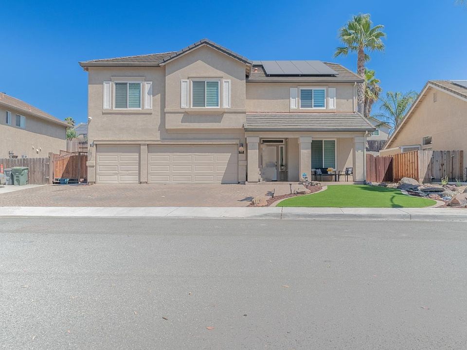 Welcome to this stunning 4 bedroom Plus Office two-story home! With a spacious living area of 3,165 sq. ft. Situated on a generous lot of 8,925 sq. ft, When entering you'll be greeted by a beautifully painted interior, giving it a fresh look. The first floor boasts an open layout connecting the family room, dining area, and kitchen. Making it ideal for gatherings and family time. Newer flooring, with its elegant design, enhances the main living space. The kitchen is equipped with modern appliances, and ample cabinetry, making it a perfect space for cooking and hosting. The first floor has an office, bedroom, or toy room area. Upstairs, you'll find four generously sized bedrooms, each with its own unique charm. The primary suite, features a spacious bedroom, with 2 closets. The primary bathroom boasts a luxurious feel with its double vanity, soaking tub, and a separate walk-in shower. The backyard offers new artificial grass and a sparkling pool, One of the major features of this home is its 50 solar panels. So many amenities to list!