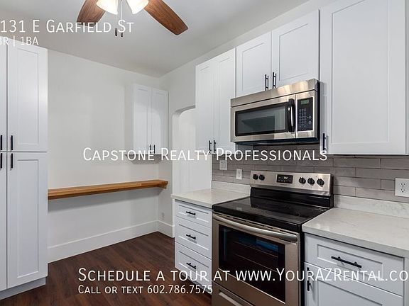 Jump on your chance to live in this great historic neighborhood minutes away from Downtown Phoenix. Enjoy all the luxuries and convinces of living downtown without having to sacrifice the comforts of living in a home! This bungalow features stainless's steel appliances, upgraded kitchen, private backyard and inside laundry. This home is a quick bike ride or walk to plenty of restaurants, shopping, ASU Downtown campus and easy access to I-10! AVAIL ASAP! The Garfield Historic District contains primarily modest bungalows and Period Revival style homes but it also includes a noteworthy concentration of older turnof-the-century structures, including the largest concentration of "Pyramid Cottages" in Phoenix. The neighborhood provides a sampling of architectural styles from the earliest vernacular homes in Phoenix to the early Ranch-style homes that would become prevalent following World War II. -- Monthly Fee: Resident Benefit Package $49.99 Security Deposit: Equal to one months rent Cleaning Deposit: $275.00 Pet Deposit: $200.00 per pet One Time Lease Administrative Fee: $150.00 Carbon Dioxide Detector Dryer Historic Neighborhood On Street Parking Pets Landlord Approval Smoke Detectors Washer Wood Flooring