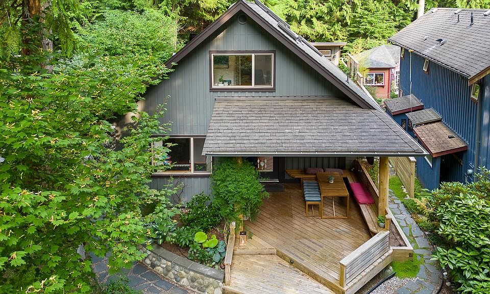 Welcome to Roberts Creek cohousing; a multigenerational engaged community comprising 31 separate homes & common facilities set on 20 stunning acres in the heart of the village. This 3bed/2bath reno’d private home is set down a winding path backing onto a sunny veggie garden & the start of forest trails. This architectural gem & characterful bright home offers fabulous high ceilings, radiant fir flooring, built in desks/storage & an efficient layout throughout. Included is a gorgeous bunkie perfect for your guests. Share a detached gym, workshop, & grand common house with a commercial kitchen, dining hall, guest suite, theater lounge, kids room & playground! Plenty of park-like landscaping & gardens surround. Just a quick stroll to the beach, elementary school & famous Gumboot Cafe!