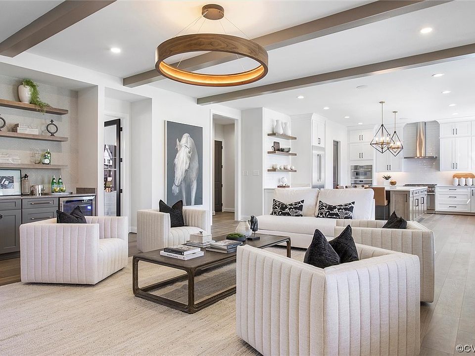 - Description: impressive room w/beamed ceiling & linear gas fp