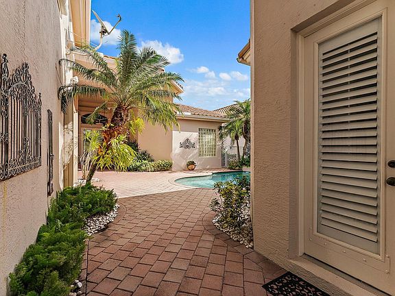 Seize the opportunity to own a stunning pool home in the highly sought-after PGA National community of Grand Cay, this exquisite 5-bedroom, 5.5-bathroom home offers a lifestyle of comfort and sophistication. New 2024 Roof! A grand entrance leads to an interior defined by soaring ceilings and abundant natural light, creating an inviting and spacious atmosphere. The Spanish-style courtyard is a private sanctuary featuring a sparkling pool and a separate pool house, ideal for hosting guests or creating a personal retreat. Step outside to a peaceful backyard overlooking a serene lake with a charming fountain, providing a picturesque and tranquil setting. This home is located in a manned, gated community, ensuring both security and exclusivity. As a resident, you'll also have access to exceptional amenities, including a clubhouse with a pool, gym, and party space, perfect for relaxing or entertaining year-round. This property is more than a home; it's a retreat designed for living life beautifully.