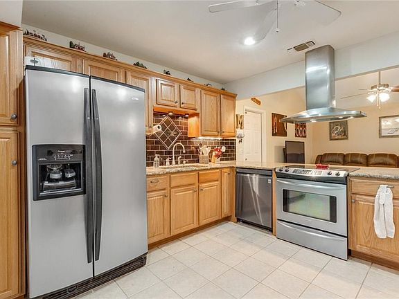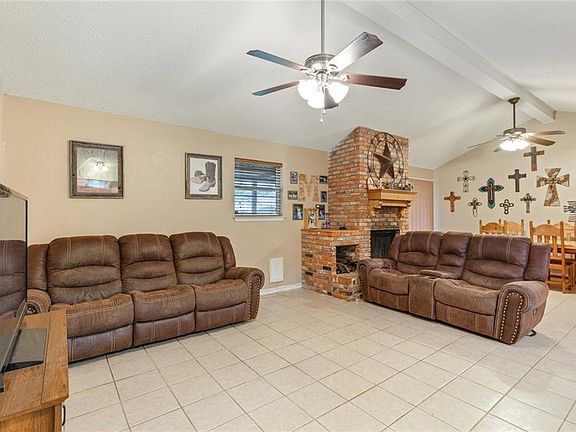Country living on 2 acres at a great price. Comfortable, open floor plan with fireplace, granite counters in the kitchen. Tile floors in main living, dining and kitchen areas. Beautiful mature shade trees in the spacious private front yard. Large fenced backyard area for dogs and/or kids. Extra large 1000 sq.ft shop measuring 20x50 enclosed with a 12x12 Door and a 20x50 Covered RV/Carport. In addition, there is a 7 x 20 shop off of the 2 car garage with work bench, storage. Additional cupboards, countertop and sink in the garage. City water, but in the county just outside city limits. Minutes to I-35 easy access. 35 minutes to the world famous Silo's.