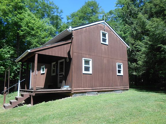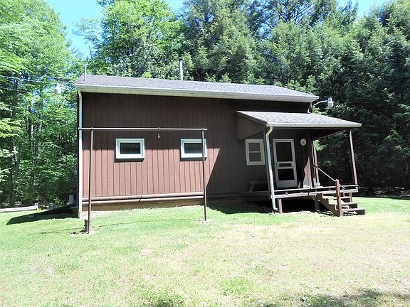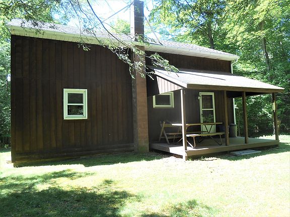 Check out this secluded camp/residence located just south of Morris. The 5+- acre property is available with furnishings and appliances. The large sleeping area has 8 bunk beds and 2 single beds. the main floor features a large kitchen with 2 stoves, 2 refrigerators, and dining area with a very large camp dining table. The kitchen/dining area is open to the living room. The bathroom is set-up with two commode stalls, 2 shower stalls, an double sink. There's a nice game room in the basement featuring a Kodiak woodstove. Optional heating for the structure is an electric FHA system. Electric is 200 amp. Enjoy the peaceful outdoor setting from the front porch or rear covered patio. All Oil, Gas, Mineral, and royalty right will transfer to buyer at closing.
