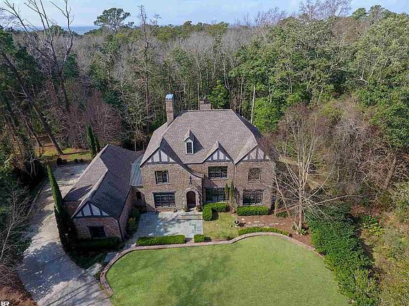 English Tudor home on private cul-de-sac lot in Old Daphne. Appointed true to a Tudor: walnut floors, coffered ceilings, and barley twist spindles enhance the staircase. 4 sets of Mahogany French doors open onto back covered patio with fireplace. 3 car garage with a spacious workshop. In addition to main floor master bedroom/bathroom, there is a den/home office with bathroom, and a spacious recreation room on 2nd floor, surrounded by 3 bedrooms-each with their own private full bath and a partially finished room-you decide. Home is convenient to I-10, Daphne-Private-Catholic schools. Public access to a beautiful sunset on Mobile Bay is a short stroll away.