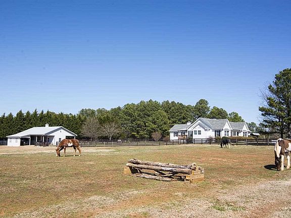 Rare find check out this established horse farm with updated 3 bedroom/3 bath ranch home, 3-stall barn, riding ring, plus four board fencing, located in an area of fine farms close to Hard Labor Creek trails. This farm is move-in ready for you and your horses. The home features a 2309sf split bedroom plan with gleaming hardwood floors, and updated kitchen and baths. The windows are tall, ensuring a bright airy feel and the pastoral views you are seeking. You ll love the easy flow of this home step into the foyer, and the bank of windows draws you forward into the comfortable living room. Imagine relaxing fireside after a trail ride. The dining room is to the right, with a wide archway leading you into the modern kitchen. Cooks will appreciate the convenient work triangle and custom cabinetry, plus the center island that s perfect for meal prep. The versatile keeping room is the perfect place to snuggle up with a good book. The master bedroom is beautifully detailed, with a trey ceiling and bay window. Luxuriate in the deep soaking tub in your ensuite bath. The adjoining office overlooks the barn so when you must do paperwork, at least you can watch the horses. The two additional bedrooms are large, and tucked privately down the hall beyond the kitchen. There s plenty of storage in this home, including a wall of cabinets in the laundry room. The sun room connects the main home to the attached three car garage. With formal living and dining rooms, plus keeping room, office and sunroom, this home has a perfect mix of gathering and quiet spaces. This well-maintained home has been completely updated in recent years roof, HVAC, and water heater are all less than 5 years old. The walkout basement is a bonus! The 36x48 3-stall barn has hot/cold water, tack/feed room, plus space for shavings and hay storage. The layout takes advantage of the prevailing winds to stay cool in the summer and comfortable on wintry days. The 400ft drilled well provides ample fresh water, and each field is served by a no-freeze faucet. The riding ring is about 100ftx125ft, and the footing is a mix of sand and M-10 on a graded clay base that provides comfortable riding year around. The yard and one paddock are double fenced with no-climb wire perfect for your dogs. The level 5 acre corner lot includes 2 gated entrances.
