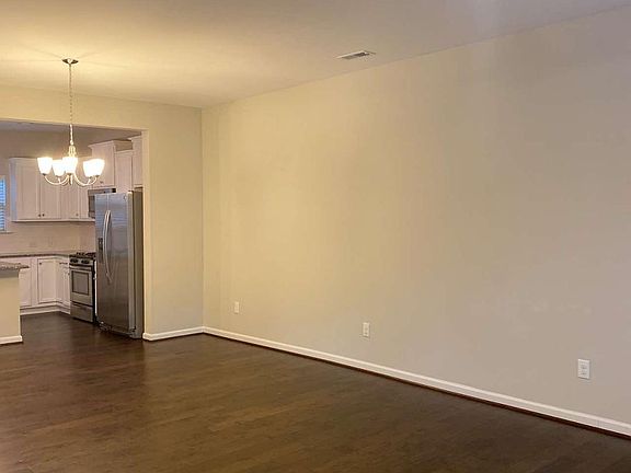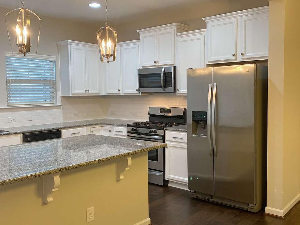 Beautiful open floor plan with white kitchen cabinets, granite counter tops, tile backsplash and SS appliances. Hardwoods on main floor. Master has walk in closet and dual vanity on suite. Two other bedrooms, bath and laundry room (Washer/dryer included $40/m) finish second floor. Convenient to all RTP!