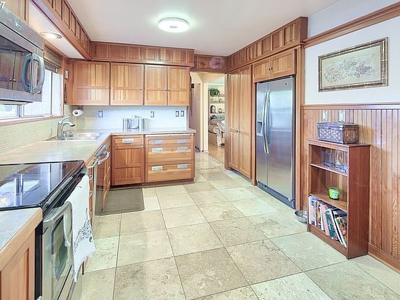 Remodeled Mid-Century situated on a specious lot on quiet cul-de-sac. Custom made, solid fir cabinetry, shelving and doors throughout. Oak hardwoods, travertine kitchen and entry tile! Double sided wood fireplace. Two separate gas fireplaces. Fenced, park-like back yard has private access from the master suite to a nice sunny patio area that includes a gazebo, and large attached shed. Perfect for Entertaining!