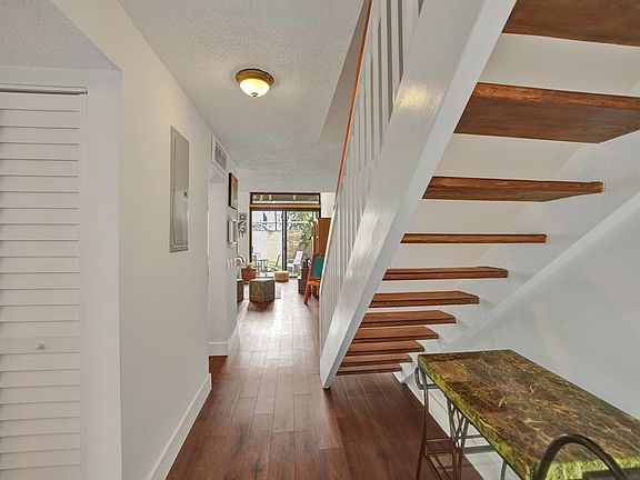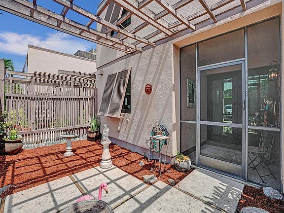 This adorable 2-story 3 bed/2 bath townhome features BRAND NEW impact glass windows and doors. It conveniently has a bedroom & full bathroom downstairs. This open floor plan has chic, wood vinyl flooring. The combo dining & living room looks out on to your private screened in patio. Sliding glass doors across the back of the home allow in ample natural light. The wood beamed vaulted ceiling adds character. The primary bedroom has generous space, a sizable closet, & an upgraded en suite bathroom. Roof replaced in 2019. You can RENT RIGHT AWAY! Enjoy 2 assigned parking spaces right outside the property. Flamingo Villas has round-the-clock security, pools, gym, playground, racquetball, sauna & tennis courts, plus close proximity to hospitals, shopping, and CB Smith Park.