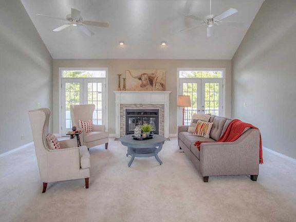 Welcome to this stately cottage style home offering casual luxury throughout. French doors lead to stunning views & rolling hills. Enjoy a custom kitchen/hearth room w/ fireplace hardwood floors and eating area. Backyard oasis w/ balcony deck overlooking inground pool, gated play area and privacy. Featuring rustic hand-scraped wood floors, 3 fireplaces, 3 living areas, granite countertops, stunning ceilings w/ crown molding handsome study! Basement family room/hobby room/game room. Downstairs playroom could be fourth bedroom. Storm shelter could be finished storage. Call for a personal tour today!