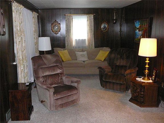 Property in well maintained condition. Original hardwood floors (under carpeting) is throughout the first floor. Two enclosed porches, one off living room, the other off kitchen, Both porches have windows with screens. Full finished lower level game room. Oversized 2 car garage behind home. (only 1 garage door opener works.) Ceiling fans in bedrooms and dining room. Country feel but close to shopping, gas station, restaurants and close to interstate.