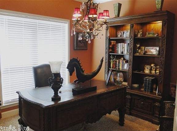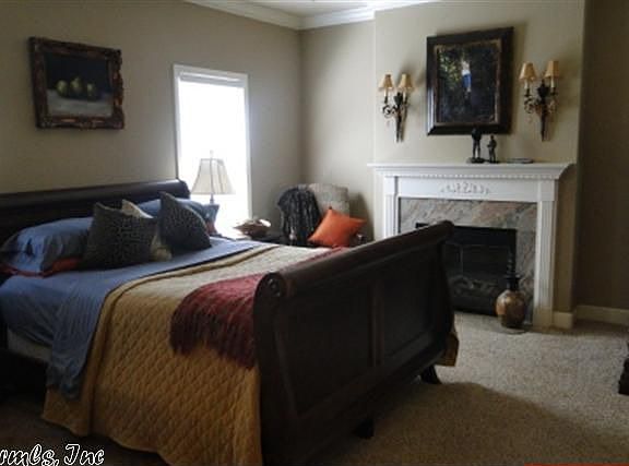 Beautiful home nicely nestled on almost an acre.Master suite is apart from the guest BR'S & has an electric FP. tray ceiling & recessed lighting. The luxury master bath includes soaking tub, walk in shower & his and hers vanities. The kitchen is fitted w/ built in SS freezer & fridge, smooth top range, center island bar w/ built in microwave & trash compactor. It is separated from the family room by ceiling to floor stacked stone FP. Formal dining, office, sunroom, Owner is a licensed Real Estate Agent