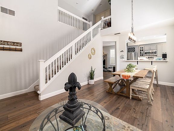Upgraded throughout, this amazing Westside home is located in the desirable neighborhood of Stony Brook, just steps to Hartz Ave with the finest dining & shopping Danville has to offer. This outstanding home offers an open living and dining room with vaulted ceilings and a gas fireplace, plantation shutters, upgraded wide plank hardwood floors, designer lighting and natural light flowing throughout. The beautifully appointed kitchen boasts upgraded cabinetry, stunning quartz countertops, classic subway backsplash, high-end stainless steel appliances, a wine fridge, pantry & breakfast bar. The kitchen is open to the family room with access to the charming backyard patio, perfect for hosting friends and family. The light and bright master bedroom boasts vaulted ceilings, hardwood floors, and a stunning ensuite with custom tile work, a relaxing tub, glass-enclosed shower and a spacious walk-in closet. The peaceful Stony Brook development features charming brick paver driveways, tree lined streets and a community pool. Located within minutes of award-winning schools, the Iron Horse Trail, the freeway and walking distance to downtown shops and restaurants. Don’t miss this amazing opportunity to live in the Stony Brook neighborhood of Westside Danville.