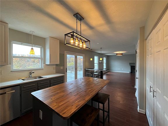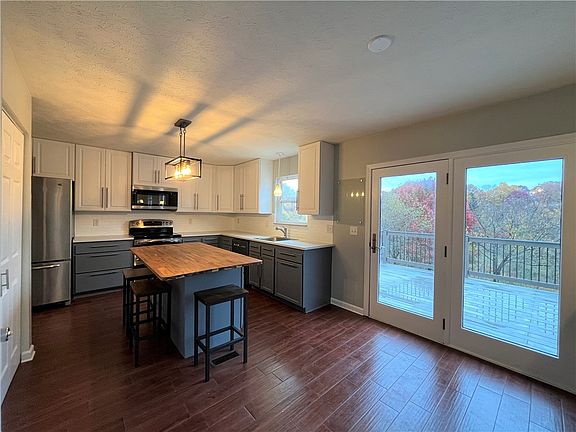 Welcome to this beautiful home in Indiana Township and the Fox Chapel School District. Gorgeous wood-look ceramic tile flooring throughout the main floor. Updated kitchen with stainless steel appliances, breakfast bar, new butcherblock island, new cabinets, and new quartz countertops. Kitchen opens to large living/family room with gas fireplace. Through the glass door, you will be on the oversized deck overlooking a spacious fenced in backyard. Dining room, laundry, half bath, and den/office complete this main level. Upstairs you'll find brand new carpet, the owner suite w/vaulted ceiling, walk-in closet, double vanity, a soaking tub, and separate shower. Three other sizable bedrooms with spacious closets, a full bath, and two large closets on second floor. The lower level is a walkout finished basement with available plumbing for a wet bar ideal for a game room. Property has a patio in the back and front. Integral two-car garage with a driveway for ample parking.
