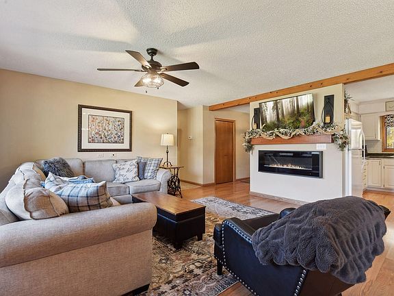 Experience the charm of this beautifully updated rambler, thoughtfully renovated to create an inviting open-concept main level. The main floor boasts 3 spacious bedrooms, including an owner's suite with a walk-through bath and a walk-in closet. The laundry could easily be relocated back to the main level closet with plenty of room. The home features numerous recent upgrades, including a freshly painted exterior, a new concrete driveway, and a colored patio slab in the backyard. The upstairs bath has been remodeled, and the entire home has been freshly painted. A striking wood beam accentuates the living room and kitchen, adding warmth and character. A lovely electric fireplace has been added to the living room, creating a cozy ambiance. The recently renovated lower level features a generous family room, a bedroom, another full bath, and ample storage to meet your needs. This home also includes a large insulated and finished heated two-car garage with a handy access door leading to the backyard. Set on a .36-acre lot, the property offers plenty of space for outdoor enjoyment, complete with a 30 x 50 concrete basketball court, deck, and patio. With extensive upgrades throughout, this one-level gem is ready to welcome its next owners with style and comfort.