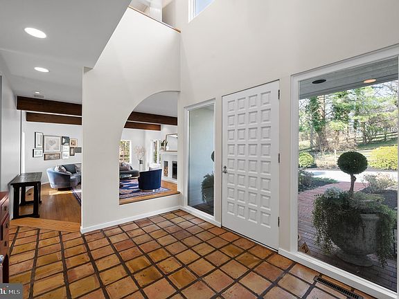 Indulge in the epitome of modern luxury living within this contemporary masterpiece, meticulously remodeled and professionally designed to evoke drama, elegance, and functionality. Situated on a serene double cul-de-sac neighborhood, this five-bedroom residence offers a unique three-dimensional living experience, seamlessly blending indoor and outdoor spaces. Bask in the tranquility of the landscaped grounds, featuring a swimming pool, terraces, and flower gardens, all visible through walls of sliding glass doors and large sunny windows. Recently installed exterior lighting is automatically controlled by Lutron's Caseta System and designed to aesthetically and effortlessly guide you up the driveway and in full view of the stunning Japanese Maple that welcomes you home. Step through the grand foyer into the living room, where a fireplace, beamed ceiling, and dramatic curved wall create an intriguing and inviting ambiance. The adjacent dining room boasts abundant natural light and is perfect for hosting lively gatherings with family and friends. The eat-in kitchen is a chef's dream, showcasing double-glass cabinets, artisan hardware, and high-end appliances. The spacious family room, with its own fireplace and wall of glass, allows for maximum comfort and enjoyment while also seamlessly guiding you to the brick terrace and expansive yard beyond. The large, outdoor terrace adds yet another gathering space also wired for sound – al fresco cocktails, dining and grilling are the recipe for delicious fun & forever memories both inside and out! Discover a sumptuous first-floor bedroom suite with a limestone shower and private entry, ideal for guests or multi-generational living. Ascend the stunning cantilevered staircase to the luxurious primary bedroom suite, complete with a walk-in dressing room and spa-style bath. Three additional beautifully designed bedrooms and a full bath offer ample space for family or guests. The finished lower level provides additional living space, while recessed, dimmable lighting and a Generac generator add convenience and 24/7 peace of mind. The home features a premium geothermal HVAC system, purification enhancements to the home’s water and air handling systems throughout, LED lighting, and high-efficiency windows ensure both comfortable and sustainable living. Centrally located in a very safe and sought-after neighborhood, this home offers easy access to award-winning schools, dining, shopping, commuter roads, and regional rail. With its ergonomic design and eco-conscious features, this modern home provides the perfect balance of sophistication and comfort, reminiscent of a Santa Barbara retreat.