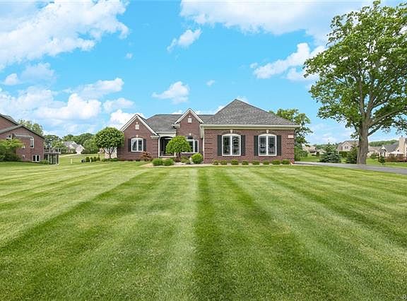 BEAUTIFUL BRICK RANCH WITH LOWER LEVEL WALK-OUT IS SITUATED ON A METICULOUSLY MAINTAINED (.83 AC) LOT WITH GORGEOUS IN-GROUND POOL and located among other custom built homes in desirable San Marino Hills offering picturesque common areas & ponds. Open plan features a spacious Foyer, Dining Room with vaulted ceiling & hardwood floor, Great Room with vaulted ceiling, skylight, marble surround fireplace & stately wood mantel. Snack-bar Kitchen & Bay Nook with granite counters, stainless steel appliances, walk-in Pantry, ceramic floor & door-wall to an elevated composite deck. Split Bedroom layout features private Master Suite with tray ceiling, walk-in closet with custom organizer & Bath with marble floor, dual sink vanity, luxurious jet tub & Euroglas enclosed shower. Bedroom 2 with walk-in closet and Bedroom 3 share a large Buddy Bath with dual sink vanity. LL walk-out includes huge Rec Room with multiple windows, 2 door-walls, Kitchenette & Bath. 1st Floor Laundry/Mud Rm, 3 Car Garage.