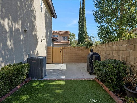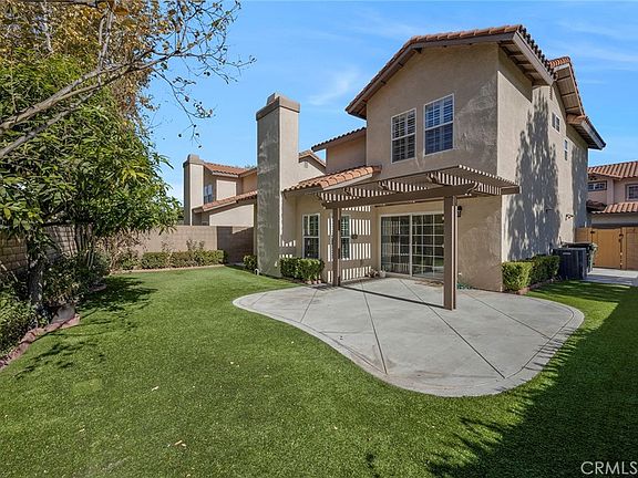 Welcome to 1131 Via Palma located in the lovely Las Brisas community of Placentia. Not only is this 3 bedroom 2 and a half bathroom home one of the very few DETACHED homes in the community it also offers a highly desirable end of cul-de-sac location. It features a 2 car attached garage with room for storage. Step inside to find a separate dining room and family room with tile flooring, a beautiful brick fireplace and plantation shutters. Just off the dining area, step outside into your large, private backyard with covered, concrete patio, low maintenance artificial turf and 2 large side yards-great for a barbequing and extra storage. Walk upstairs to the three spacious bedrooms. Upstairs bathrooms have updated flooring and countertops. The primary bedroom offers a walk in closet and beautiful tree and peek a boo views of the Alta Vista golf course. The primary bath offers dual sinks, shower and a private toilet area. This community offers very low HOA dues and many amenities including a well maintained pool/spa and the potential for RV parking. The Las Brisas community is located in the award-winning PYLUSD and close to shopping centers.