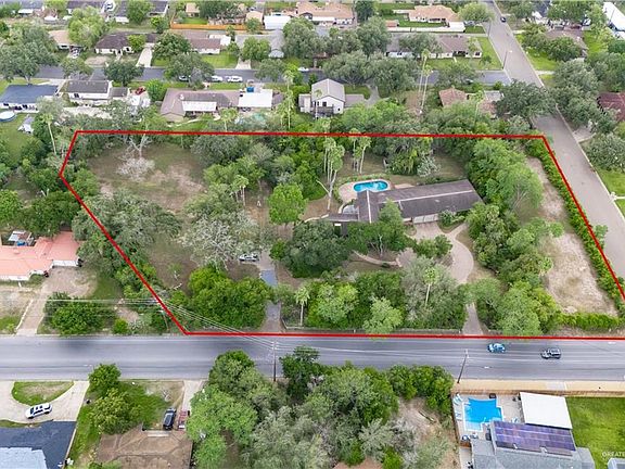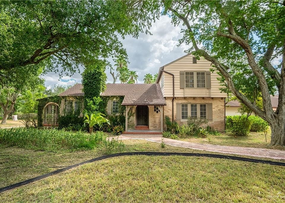 A rare blend of privacy, history, and comfort. Nestled among towering shade trees—including a magnificent long standing oak—this early-1930s two-story brick home showcases original hardwood floors and hand-crafted wood doors. In the formal living room, exposed beams reclaimed from a Mexican-Revolution-era railroad bridge add unforgettable character. The main house offers 4 bedrooms and 2½ baths, including a downstairs primary suite, multiple living areas, a sunroom, library, and modern kitchen. All appliances convey. Home was remodeled in the 90s. Beautiful landscaping surrounds the home, where a variety of birds visit year-round. Multiple patios, and a pool create inviting outdoor spaces. An attached guest house separated by the garage adds versatility with 2 bedrooms, 1 bath, a full kitchen, washer, dryer, and handicap accessibility. Set in a quiet Weslaco neighborhood yet minutes from downtown amenities, this 3 acre property delivers unmatched character and space for a true retreat.