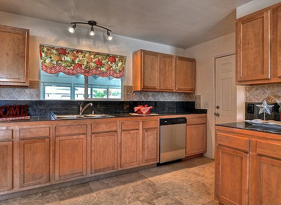 This one won’t last! Remodeled from top to bottom. Owner has spared no expense. Beautifully remodeled kitchen with granite counters, stone back splash, newer appliances, cabinetry and fixtures, breakfast bar, travertine flooring, and custom lighting. Both bathrooms have been remodeled with custom tile work (travertine in master), newer fixtures and lighting. This charming home also features fresh interior and exterior paint, newer dual pane windows, heating and A/C system, interior laundry and a custom travertine tiled fireplace. Newer flooring throughout the entire home. Spacious living room addition with French Doors and direct access to the large screened patio; perfect for entertaining and gatherings. Both the front and backyards have been professionally landscaped and include front and rear sprinkler system. Oversized 2 car attached garage with roll-up door. Recently installed roof. Close by to schools, shopping, transportation and entertainment.
