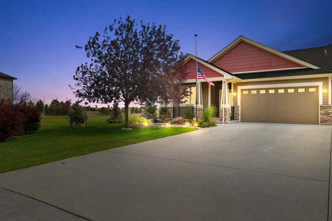Mature treesGenerous pantryTwo-car garageDual water featuresSprinkler systemFenced yardPermanent exterior lighting
