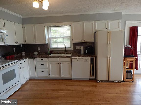 Charming 4BR/2BA One Level Country Home Nestled on 2+ acres. Large living room w/ lots of natural light. Welcoming oversized country kitchen with lots of cabinet and counter space including dining area and built-ins. Master bedroom w/ private master bath. Lower level family room w/ with woodstove, bedroom, large laundry room with storage. Storage room and additional room to finish as you like. Patio outside walkout basement. Huge oversized back deck that spans the back of the house. Huge back yard w/ play area and chicken coop/storage shed. Great place to enjoy summer. No HOA. Comcast available.