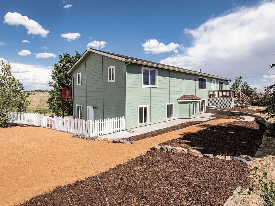 Move in ready home that is the perfect getaway from the city* Sitting on 5 acres you have tons of land to enjoy your own privacy* Pikes Peak views from the main level* As you walk inside you are greeted with wood laminate floors in the living room* The Eat in Kitchen has ceramic tile flooring, walk out to the huge composite deck, New cabinets, granite countertops, and Stainless Steel Appliances* Master is on the main level which includes a walk out to the back deck, 3/4 bath with walk in shower and double vanity* Master also includes a large walk in closet* The Main level also has 2 bedrooms and another full bath* Going down to the basement you have 2 family rooms* One family room has access to the laundry room, a half bath, and 2 walkouts to the backyard* The 2nd family room has a wet bar* There are an additional 2 bedrooms downstairs and an office with it's own walkout* There is a 3/4 bath as well in the basement* Backyard does have a fenced in area perfect for pets*