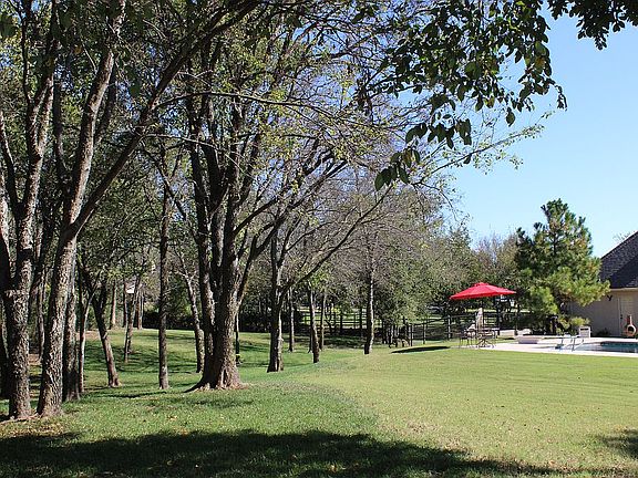 Beautiful custom home in desired gated neighborhood, Jenks schools on acre treed lot! Salt water pool w/wooded view & charming Arbour. Beautiful refinished wood floors, granite kitchen, white cabinetry, large island, pantry, newer Bosch appliances, light fixtures open to family rm w/cozy fireplace, bookshelves, vltd/beamed ceiling. Separate formal living w fireplace. Large Master ensuite w private bath & double granite vanity, jacuzzie tub & separate shower. Game rm & hobby rm could be 5th bed. Safe room
