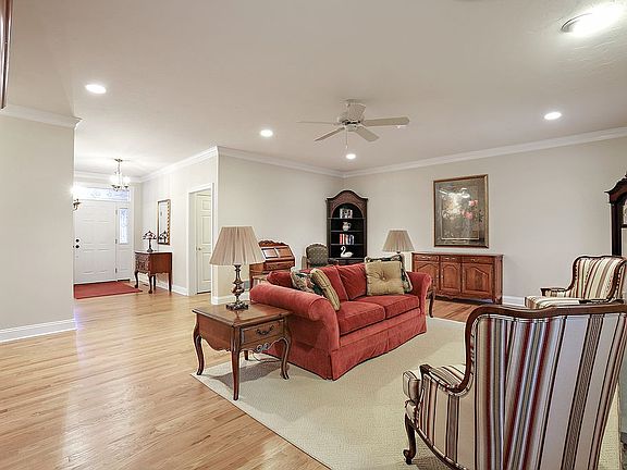 NEW PRICE!! MUST SEE all one level rancher in sought after Woodcrest/Forest Hill subdivision. When you pair a meticulous builder with a meticulous home owner, you get an immaculate home with attention to every detail during the construction process and to this very day. This home boasts more than 3200 square feet on the main level and another 1600+ on the finished lower level totaling almost 5000 square feet. Gorgeous hardwood floors in foyer, hallways, dining room, family room and primary bedroom/sitting room. The nicely equipped eat in kitchen is complete with a bar height counter, custom Hess cabinetry, upgraded appliances, Corian counters, ceramic tile floors and back splash and the laundry room is right around the corner. The primary bedroom has its very own sitting room with french doors, 2 walk in closets with pocket doors and a luxury bathroom with sunken whirlpool tub, newly renovated ceramic tile shower, lots of counter space and custom cabinetry. The guest rooms have walk in closets and direct access to the large full bathroom. The finished lower level has a recreation room, TV area and office space, a 3rd full bathroom and bedroom, as well as, several generous size storage/shop areas. Upgraded heating and air conditioning systems Relax on the rear covered deck or patio and watch the deer roam through the woods. The over-sized 2 car garage has plenty of room for your SUV's, workbench, riding mower and other lawn equipment and still space for an extra refrigerator and freezer.