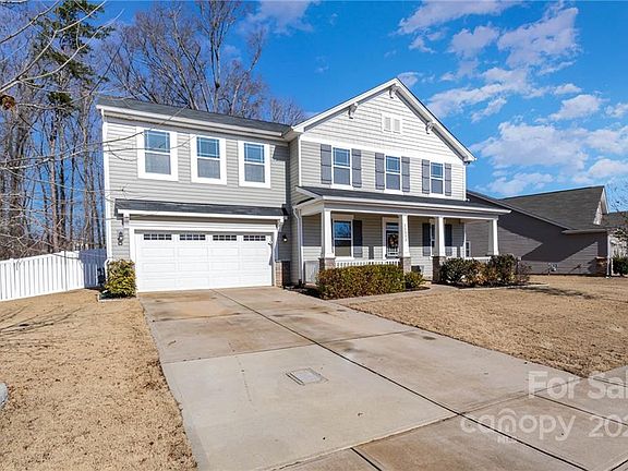 Stunning open floor plan home in Miredale. Enter into large open space that has a sitting area. Kitchen and Living room flow for great entertaining possibilites. Step out onto your covered back porch in your fenced in yard. Two of the three sides of the back yard are wooded for added privacy. Upstairs has a loft that can be a second living room or media area. Home has a large primary suite with tile shower and dual vanities. Miredale has easy access to I 485, I 77 and I 85. Home has fiber optic wiring.