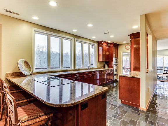 Stunning Contemporary! Over 7,900 Sqft. & 0.77 Acres of Private Serene Land w/Pool, Multiple Decks, Landscaped Grounds & AMAZING VIEWS! Lofty Windows, Skylights, HW Flrs, 4 Fireplaces & Light Filled Interiors! Eat-In Kitchen w/SS Appliances &Granite. Sunken LR & Separate DR. ML Master w/FB & Huge Walk-In Closet. LL w/ Rec Rm, Wine Rm, 2nd Kitchen, 3 BR~s, Wet Bar, Game Rm &FB; Ideal In-Law Suite!