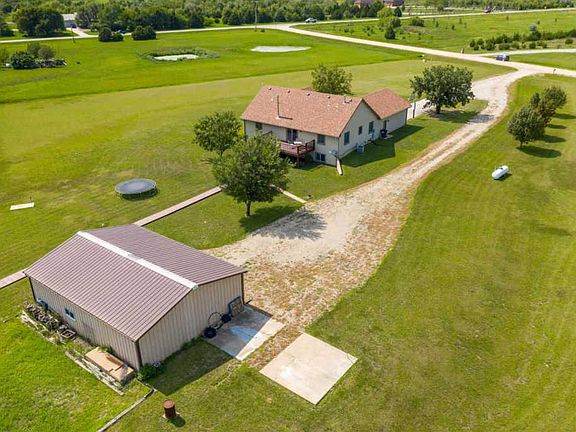 Incredible 4 Bedroom, 3 Bath home with wraparound porch and 30x40 barn on 5 Acres including a private stocked pond full of bass, sunfish, bluegill, and catfish!! Do not miss this opportunity to own your own private oasis conventionally located between Wichita and Derby in Derby schools! This well cared for home features an open floor plan with vaulted ceiling while still offering traditional spaces including a formal dinning and breakfast nook on the main level, as well as, a cozy wood burning fireplace in the living room. The finished basement includes another sizable living space with fireplace, a large bedroom, a full bath, and a huge utility room with tons of storage. This home is truly unique, don't miss your opportunity to call this special property home. Call today to set up a private showing.