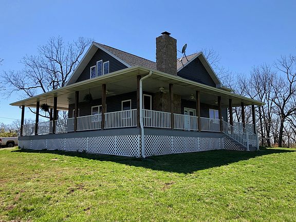 Beautiful custom built modern farmhouse with acreage and spectacular views of the Ozarks. Enjoy from your living room windows or while sitting on the wrap-around porch. Living room is very inviting with hardwood floors, rock fireplace, cathedral ceilings, exposed beams and large windows over looking your land. The living room flows into the kitchen which boasts painted distressed cabinets, large farmhouse sink, electric cooktop, and center island with room for barstools. Spacious Master bedroom suite is on the main level with walk-in shower, double sinks and large walk-in closet. A spacious laundry room is located on the main level. A beautiful open staircase leads upstairs to a family room, two full baths with one of them being a Jack & Jill, and three additional bedrooms. This property features two car attached garage, highway frontage, cattle tight fencing, hay-ground, three ponds, barn, several out-buildings, and garden area. 82 m/l acres of mostly open pasture that is ready for your livestock! With just a short drive to Lebanon, this property is the complete package for all your country living desires.