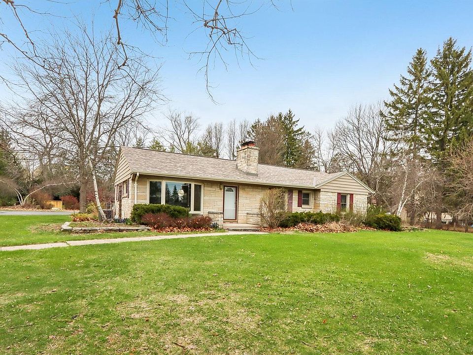 Spacious 4 bedroom Mid-century ranch set on a beautiful 1.1 acre lot! Enter into the bright LR with bay window & NFP. The kitchen with a good amount of cabinets & a breakfast bar that's open to the dining area. 3 of the bedrooms have HWF's. MBR w/ two closets. Remodeled bathroom on main and 2nd full bathroom in LL. Rec room has a wet bar and second NFP. The oversized 3.5 car garage and storage shed is perfect for the hobbyist. Low maintenance Lannon Stone exterior. Entertain outdoors this summer on your large deck with pergola and stone patio with built in fire pit! Recent improvements include a new bay window in 15', furnace & A/C in 17', roof on home and shed in 21', kitchen flooring and LR carpet in 23', well, deck and bridge over pond in 24'.