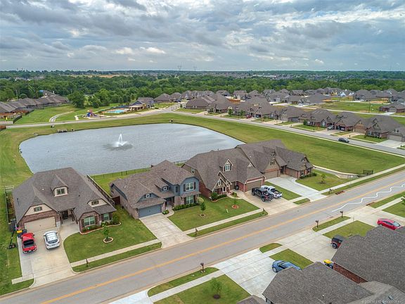 Wonderful 4 bed, 3 bath home in Jenks schools, just built in 2017! The desirable neighborhood of Breitling Village boasts a neighborhood pool, park, ponds & walking trails! Enjoy the view of the beautiful pond & fountain as you entertain in the spacious kitchen, featuring a large island, quartz countertops & gas range! All of the bedrooms are so spacious & the 2nd downstairs bedroom could be used as an office! Large covered patio overlooking the pond! Amazing location near highway 75 for an easy commute!