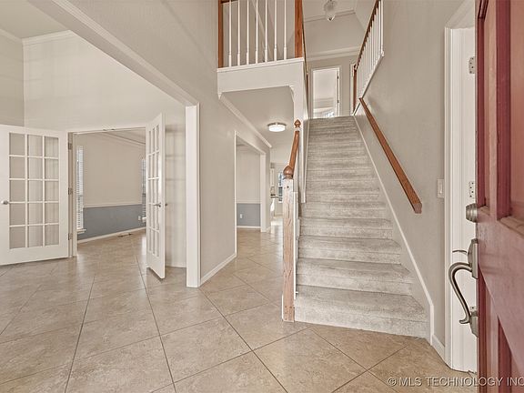 In Jenks Southeast Schools. This home is designed for both comfort and entertaining! It features four spacious bedrooms, two and a half bathrooms, including a Jack and Jill bathroom, office or flex room. Nice size primary bedroom with two closets. Don't miss the walk-out attic off the primary bedroom closet. Tons of storage! Open-concept kitchen with lots of light that flows into a large great room with built-ins and Fireplace. A wet bar is an added feature making entertaining effortless! Outside the backyard features a covered pergola perfect for unwinding and enjoying the evening or hanging out with family and friends. Exterior and interior painted this past fall!