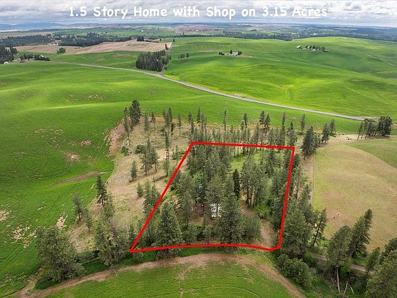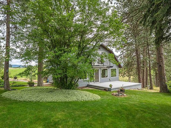 Spectacular 1.5 story Valleyford home with a shop, on a 3 acre hilltop parcel looking out over the Palouse countryside! Spacious great room has large windows with west-facing views and a sliding door that opens out to a large wood deck, perfect for indoor-outdoor entertaining. Updated kitchen with Corian counters and a kitchen island. Living room with a beautiful wood-burning fireplace. Huge master suite upstairs with large sitting room/den + half bath. Large main floor bedroom with bay window & bench seat. Large bedroom in daylight basement. Multiple heat sources including a highly efficient dual-powered hot water boiler system that provides radiant heat throughout home. Also 3 new mini-splits powerful enough to heat or cool the entire home. Large shop with 2 garage bays + storage room above. Driveway was converted from an old section of railroad tracks in 1958, it's a lovely way to access the property. Mature fruit trees line the road where train passengers threw apple cores, plums & cherries 70+ years ago!